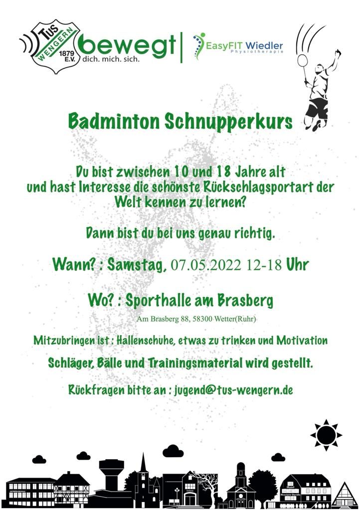 Letzte Woche Samstag veranstaltete die Badminton-Jugend des TuS Wengern erstmalig seit Corona-Beginn einen Badminton Schnupperkurs, bei dem die Kinder und Jugendlichen über rund 6 Stunden die schnellste Rückschlagsportart der Welt kennenlernen konnten.