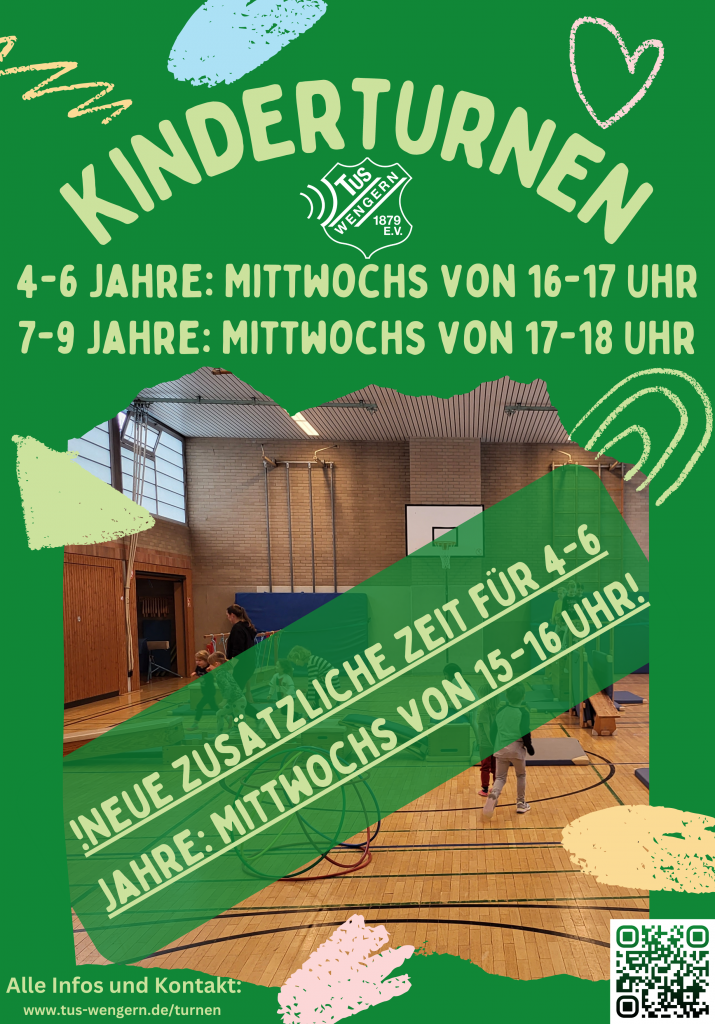 Wir erweitern unser Angebot beim Kinderturnen! In der nächsten Zeit führen wir eine neue Zeit für die Gruppe der vier bis sechsjährigen ein und haben damit zwei Gruppen, wo wieder mehr Plätze zur Verfügung stehen. Bei Interesse gerne direkt an die Mail: turnen@tus-wengern.de wenden und ansonsten gibt es alle Infos unter: www.tus-wengern.de/turnen
