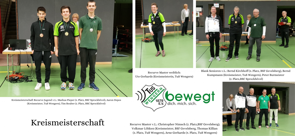 - vom TuS Wengern griffen 4 Schützen in das Geschehen ein (Recurve Jugend: Aaron Depes, Recurve Master: Thomas Killian, Rolf Gertner, Blankbogen Master: Bernd Kumpmann)