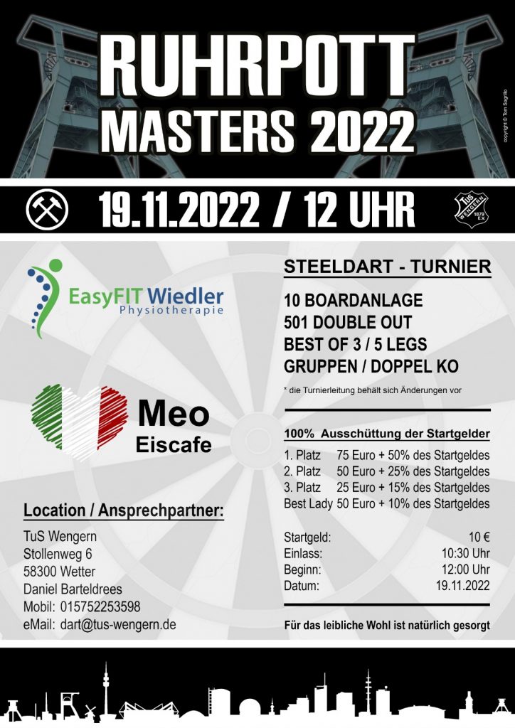 Das Ruhrpott Masters ist das letzte Steeldart Turnier des TuS Wengern in 2022 und ein Ersatz für das Happy Dartoween, welches dieses Jahr leider ausfällt.