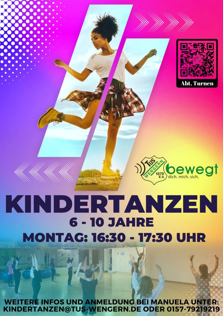 Unter neuer bzw. alter Leitung bieten wir wieder Kindertanzen mit Manuela an. Nach einer längeren Zwangspause ist sie zurück und startet wieder durch. Solltet ihr zwischen 6 und 10 Jahre alt sein und Lust auf Tanzen haben, dann zögert nicht und kommt vorbei. Alle Kontaktinfos findet ihr unten auf dem Plakat und bei den Kontakten der Turnabteilung.