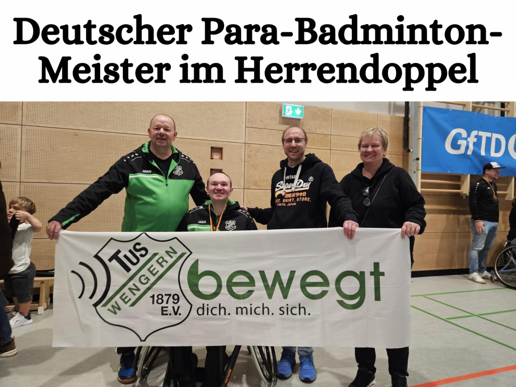 Am 16. und 17.11.2024 fanden die Deutschen Meisterschaften im Para-Badminton in Dortmund statt, und Marcel trat in den Kategorien Wheelchair (WH) Mixed und WH Herrendoppel an. Während in der Mixed Kategorie gemeinsam mit Sonja Bade nicht viel zu holen war, lief es im Herrendoppel mit Rick Cornell Hellmann umso besser. Mit dem Teilnehmer bei den Paralympischen Spielen in Paris gewannen die beiden alle Spiele und standen mit nur einem Satzverlust auf dem 1. Platz.